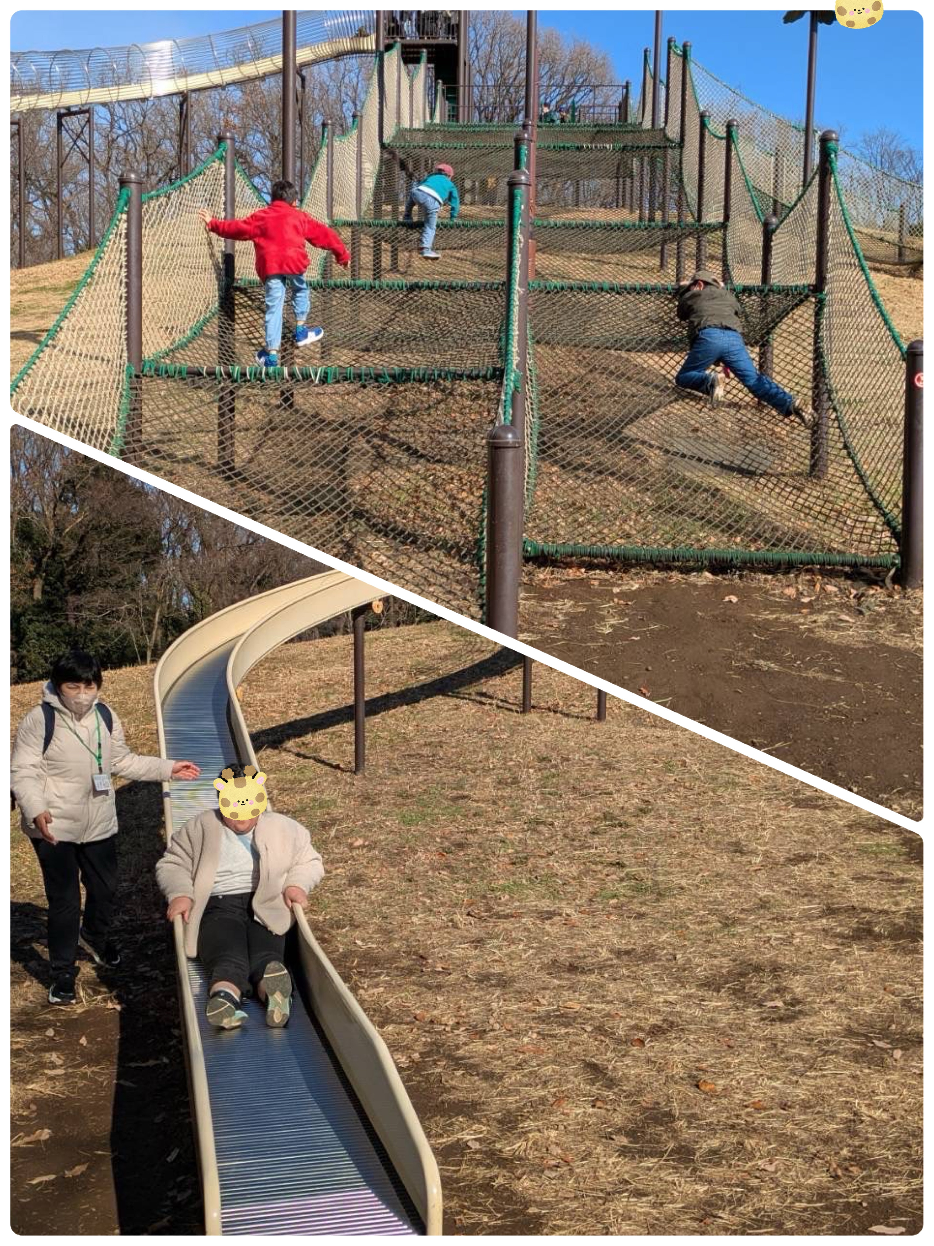 でも、滑り台を見ると寒さを忘れてネットを勢いよく登り、滑り台へ!